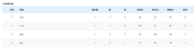 該組另一場比賽由山東對陣浙江,憑借老將安靜獨砍31分9籃板,王英竹19分11籃板,山東隊以90-71大勝浙江隊19分。山東隊1勝0負凈勝分+19,緊隨廣東,位列第2位。浙江排在第3,湖北第4位。
