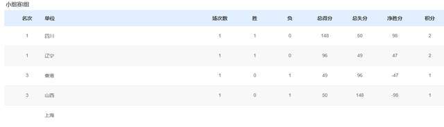該組另一場比賽由遼寧全運女籃對陣香港隊,憑借付金秋獨砍23分5籃板,以96-49大勝瞭香港隊47分,斬獲開門紅。盡管贏瞭,但同組的四川隊太強大瞭,使得遼寧隊隻能屈居第2位,香港隊則是0勝1負凈勝分-47分,排在第3位。